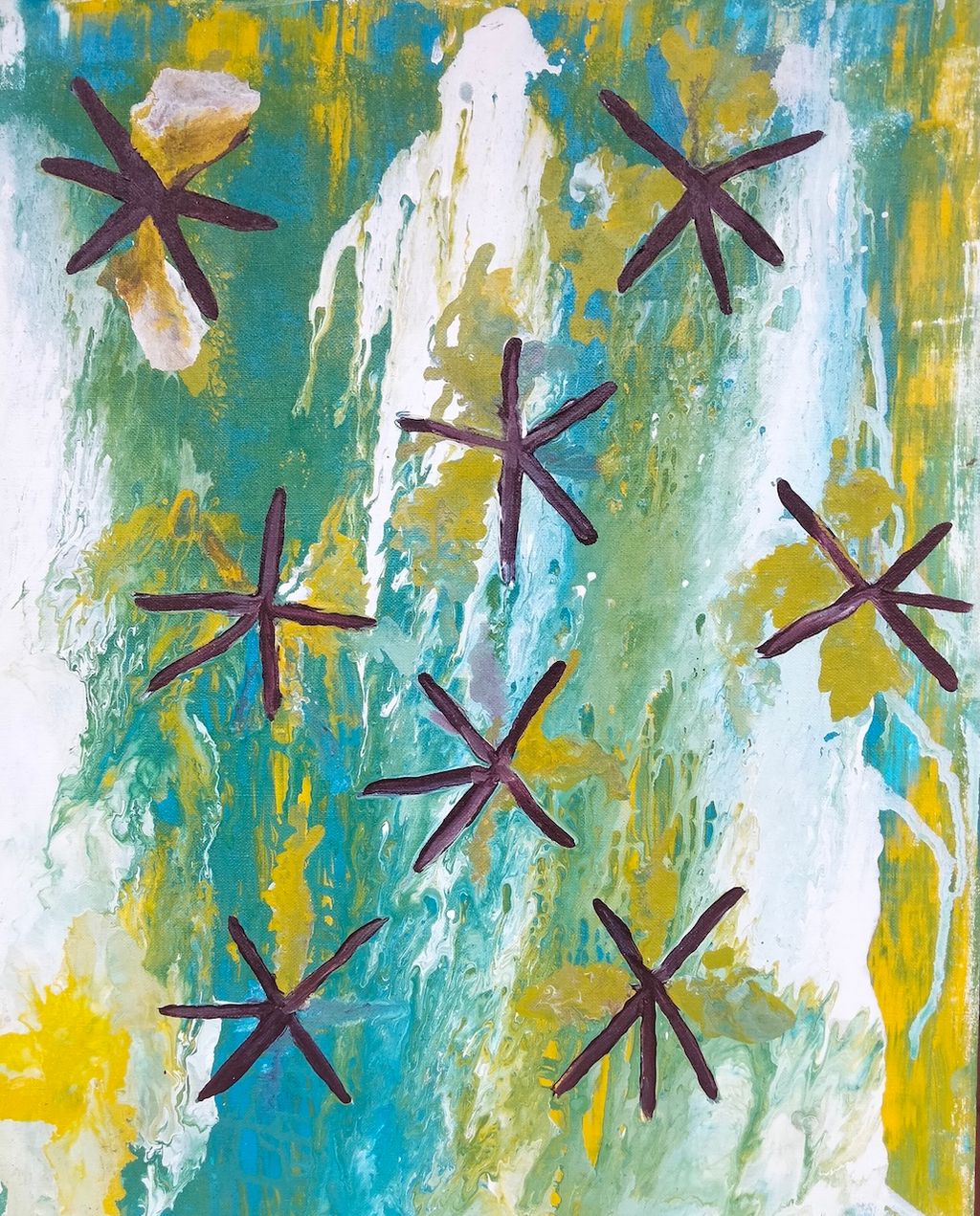 When I was a child, I used to sit for hours watching starfish move slowly through the sand. I’d gently pick them up, place them back, there was something magical about how quiet and patient they were. This drawing comes from that memory, a small moment of wonder that’s always stayed with me.